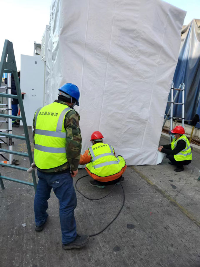 中集-出口設(shè)備熱縮膜包裝案例