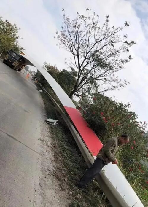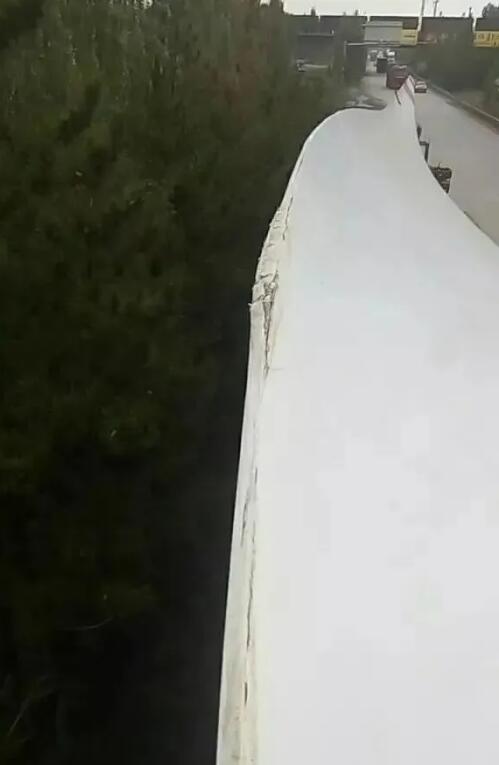 2020年1月9日在廣西賓陽武陵路口拐彎處,某大件運(yùn)輸公司一輛葉片運(yùn)輸車在運(yùn)輸一扇50米風(fēng)電葉途中,扇葉滑落,值得慶幸的是,只是擋住了整個路口,造成路過的車輛全部從武陵鎮(zhèn)里實(shí)施繞行,沒有其它重大損失。