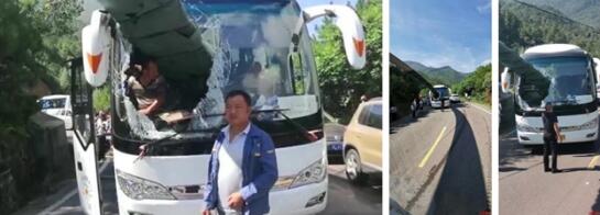 更為驚險的是,甚至有一個40米風(fēng)電頁面穿入大巴車,當(dāng)時車上還坐著10多名乘客。